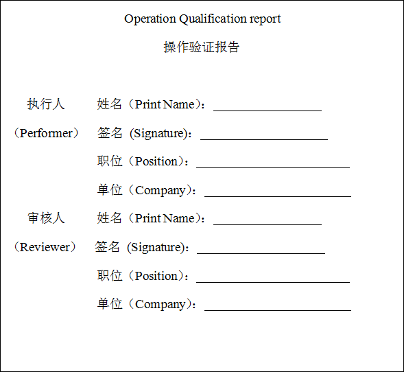 本次操作驗證(Operation Qualification)文件填寫目的是為了規范